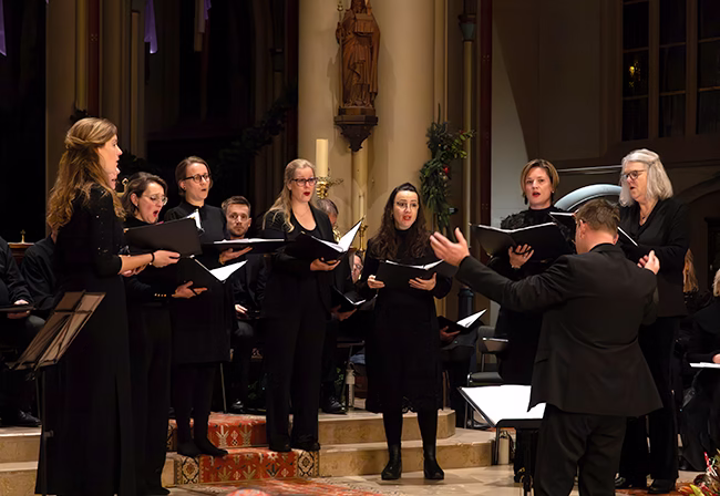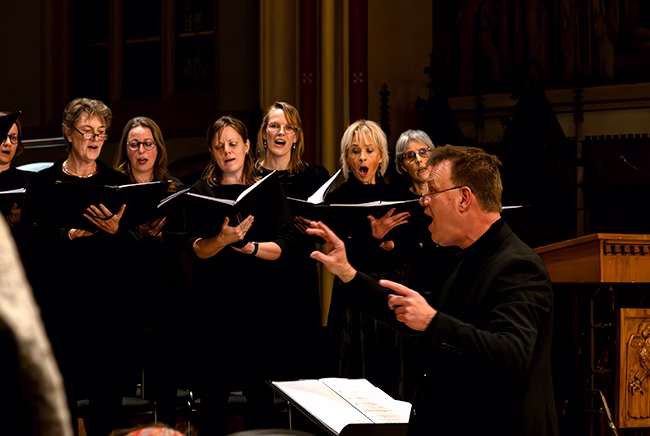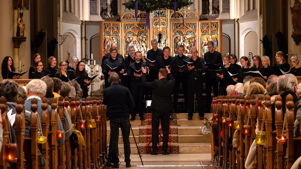 Om een optimale en evenwichtige koorklank te krijgen, werken we met een samenstelling van 8 sopranen, 8 alten, 5 tenoren en 5 bassen.